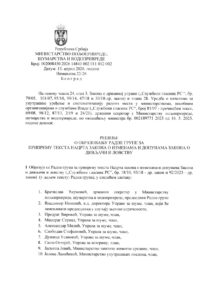 Ministarstvo poljoprivrede, šumarstva i vodoprivrede je obrazovalo Radnu grupu za pripremu teksta nacrta Zakona o izmenama i dopunama Zakona o divljači i lovstvu.
